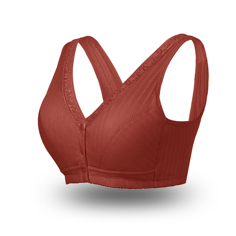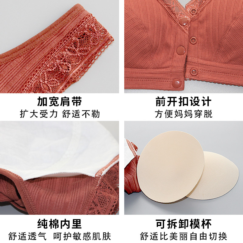 Middle Aged Mother Pure Cotton Bra Woman No Steel Ring Front Buttoned Vest Old Man Bra Full Cotton Big Code Lace Thin-Taobao