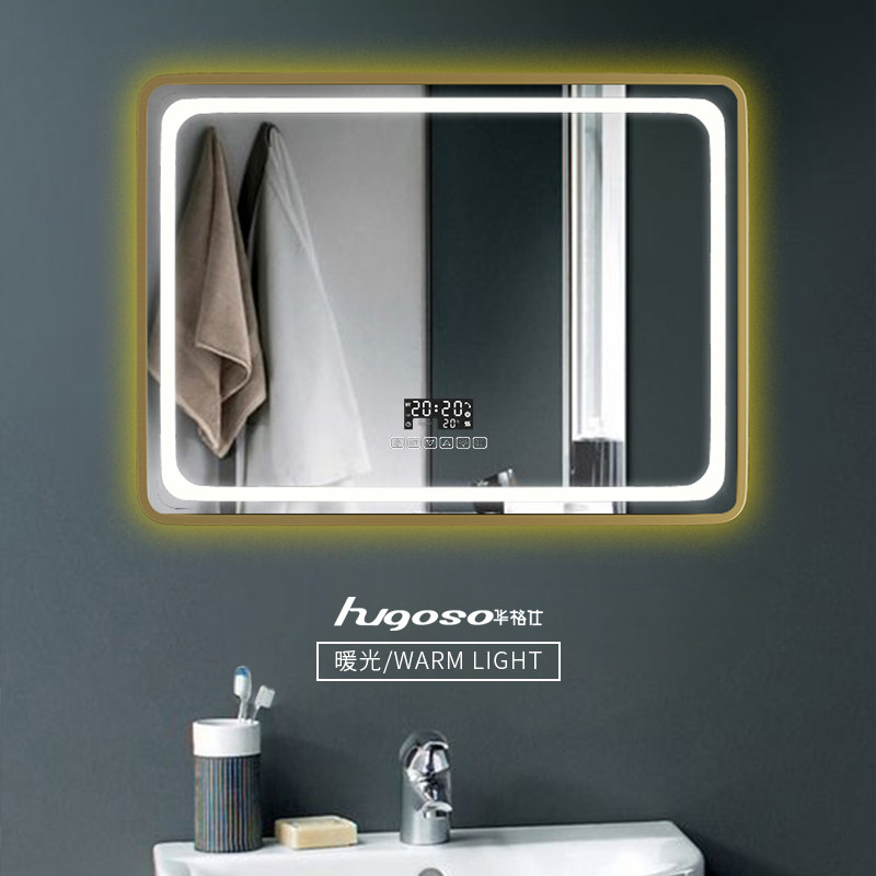 Smart bathroom mirror LED with light aluminum alloy border bathroom mirror wall hanging de-fogging Bluetooth makeup toilet mirror