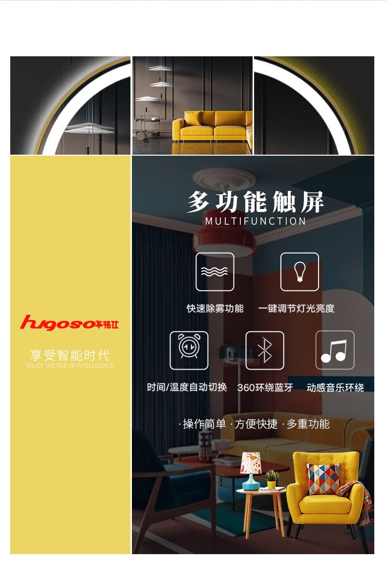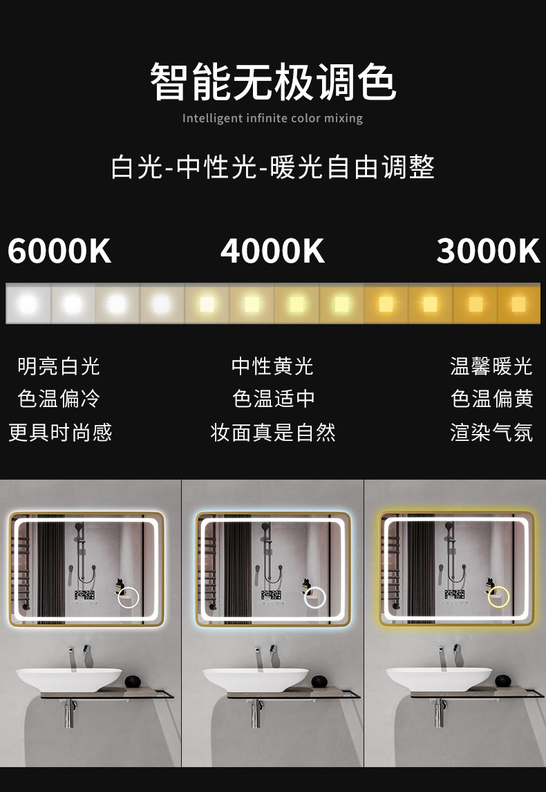 Tri-color switching infinite light change + dual touch + calendar time temperature + magnifying glass + defogging (explosion-proof)