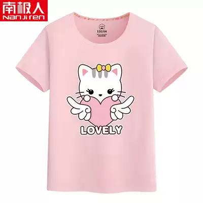 Antarctic People Girls Short-sleeved T-shirt Children's clothing Large children's cotton half-sleeve girl Pink love Children's top summer clothes