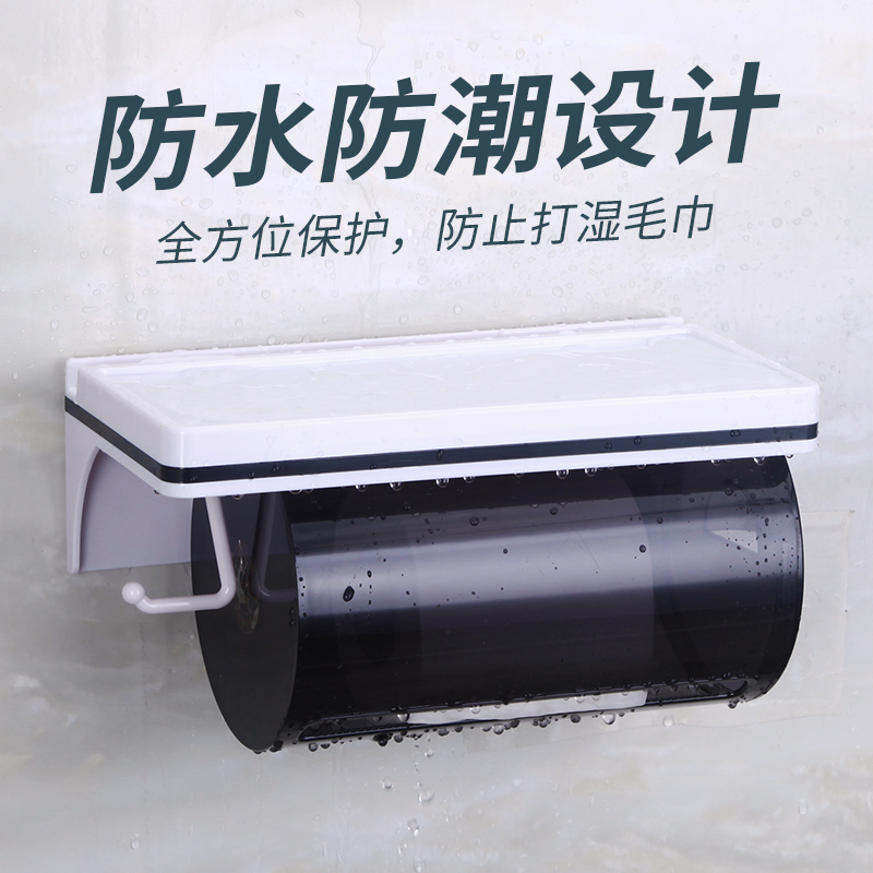 Nordic Minimalist Black Drum Sanitary Tissue Box Toilet Makeup Room Creative Wall-mounted Punching home Nail Waterproof European Style