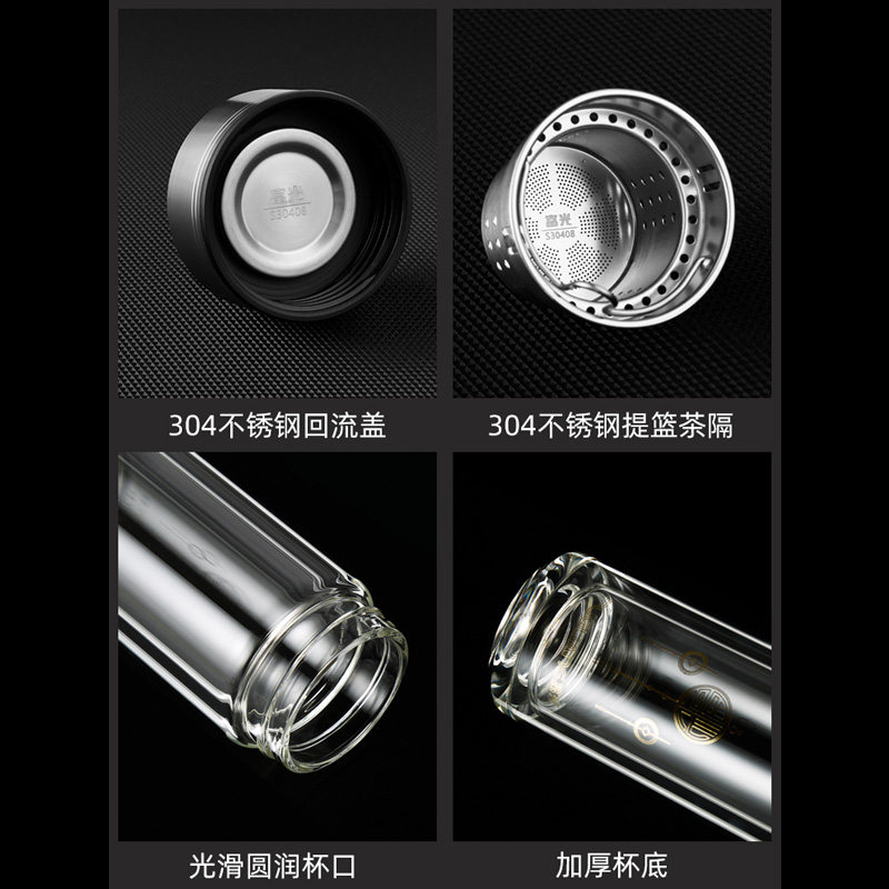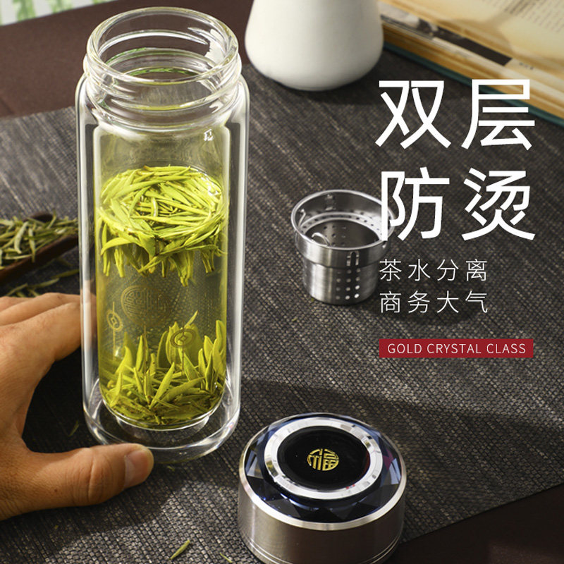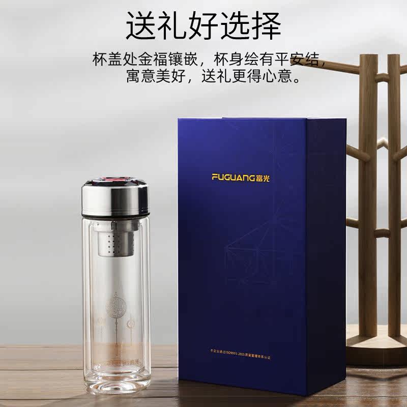 Fuguang High-end Business Glass Water Glass Double Cup Portable Cup Delivery Tea Water Separation Tea Cup