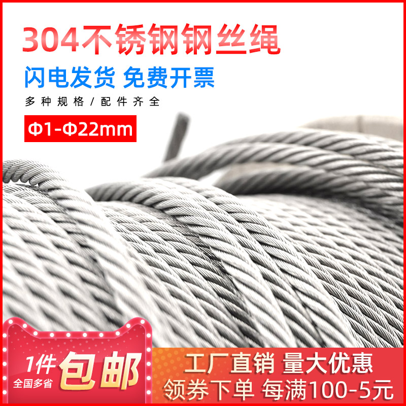 304 Stainless steel wire rope Traction wire wire wire rope thick lifting wire rope 1 2 3 4 5 6 8mm thick