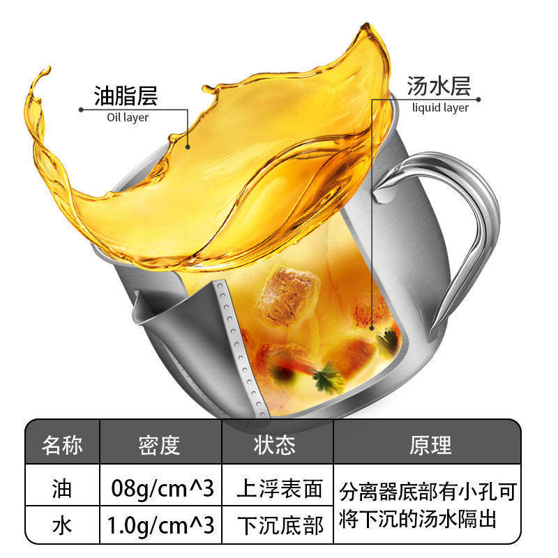 W Soup Oil Separator Household Grease Separator Bowl 304 Stainless Steel Oil Filter Spoon Kitchen Leak Filter Drink Soup Bowl - Taobao