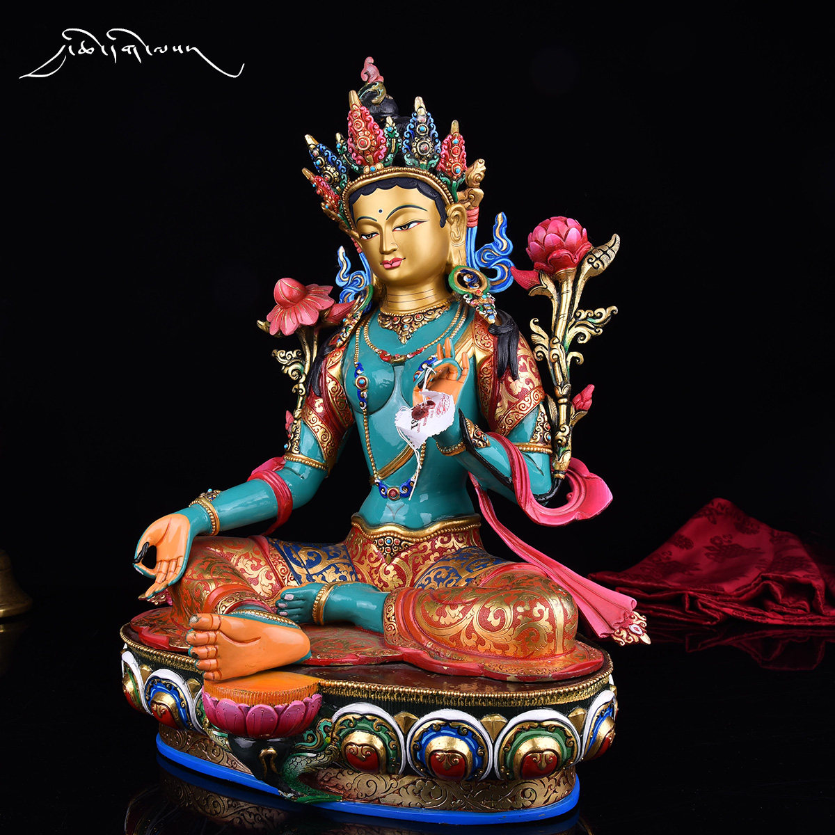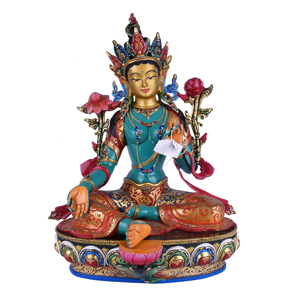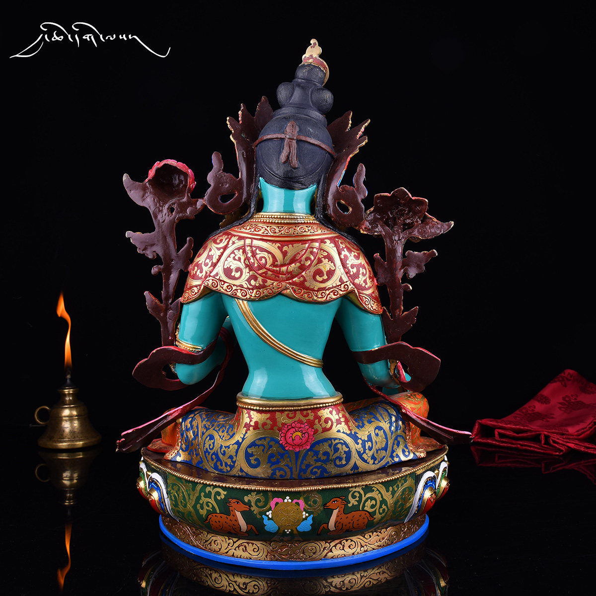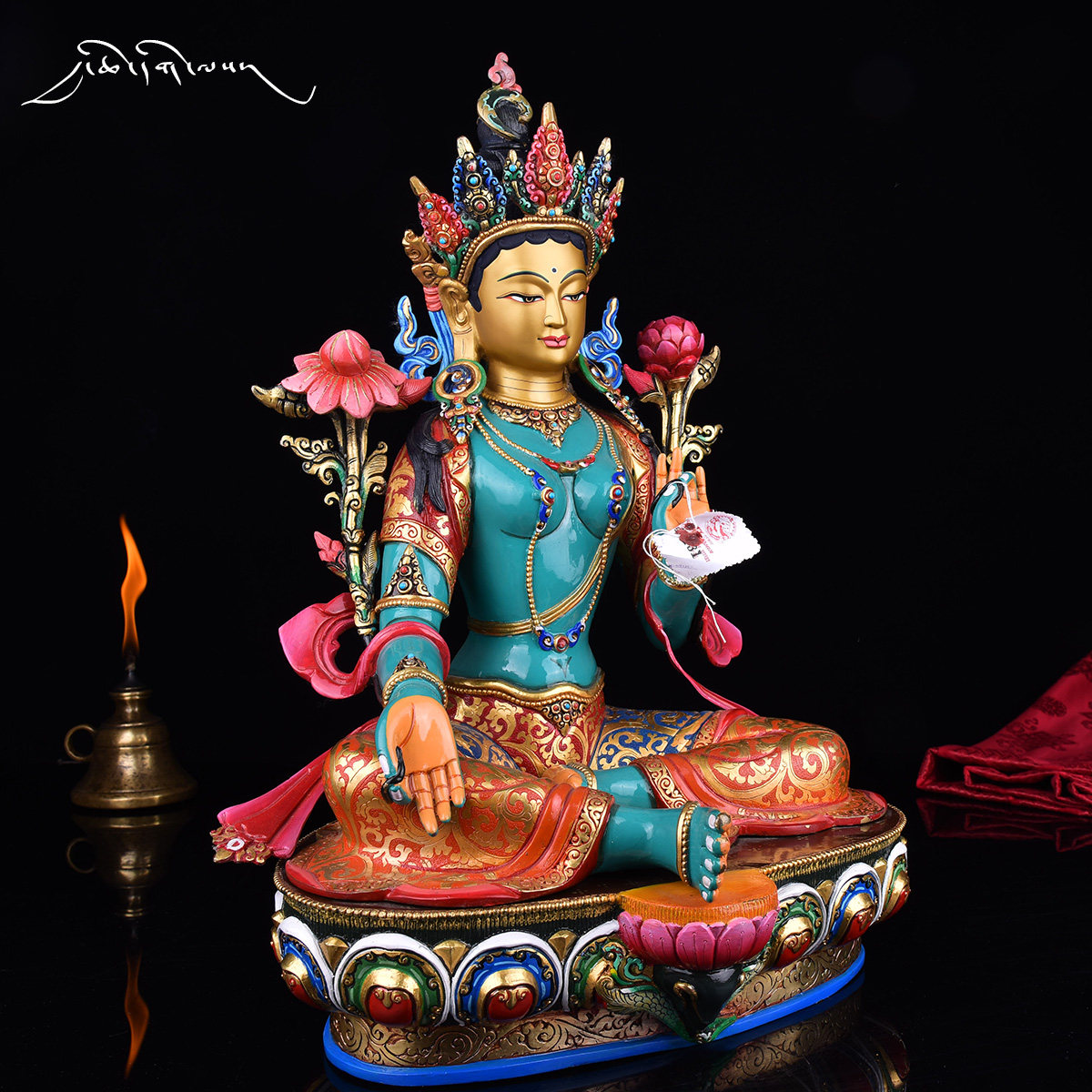 Nepal Imported Buddhist Statue Tibetan Buddhist Supplies Painted Golden Secret Sect Carving Green Mother Sacrifice Ornament