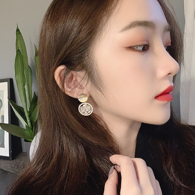 S925 silver pin 2020 Korean temperament 100 hitch new tide round ear needle advanced feeling retro short earrings woman