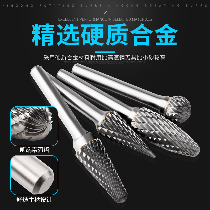 Tungsten steel milling cutter head carbide rotary file 6mm handle double groove metal grinding head woodworking electric file cutter head