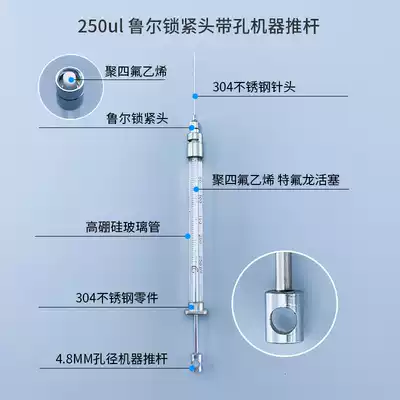 250ul micro sampler 0 25ml Luer locking head micro injection needle 250 microliter PTFE Teflon piston internal teeth external teeth replaceable needle with hole injection pump matching