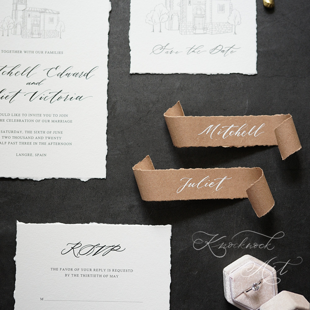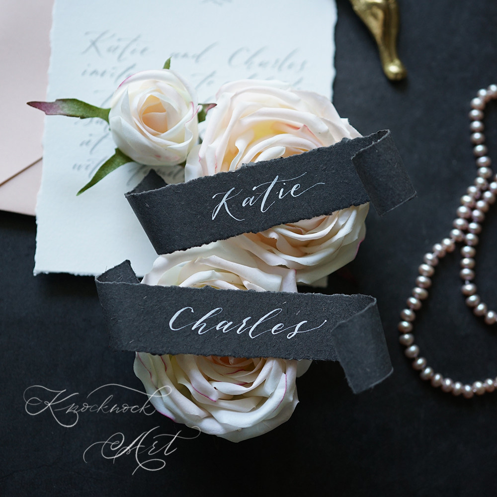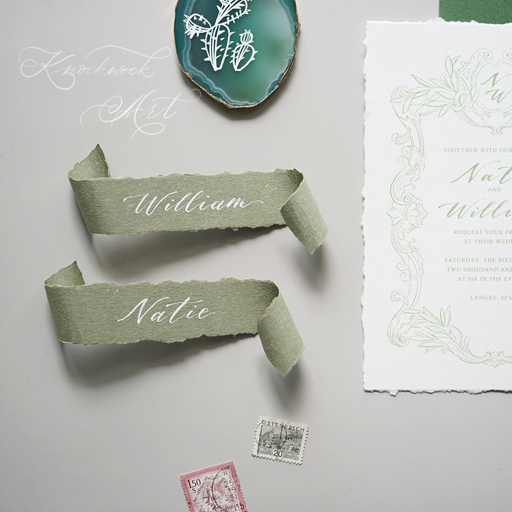KKlife handwritten custom wedding curly edge seat card name card shooting props gift card gray blue ins