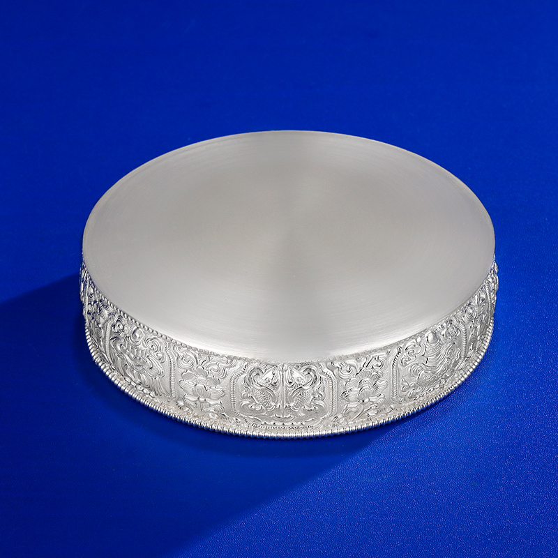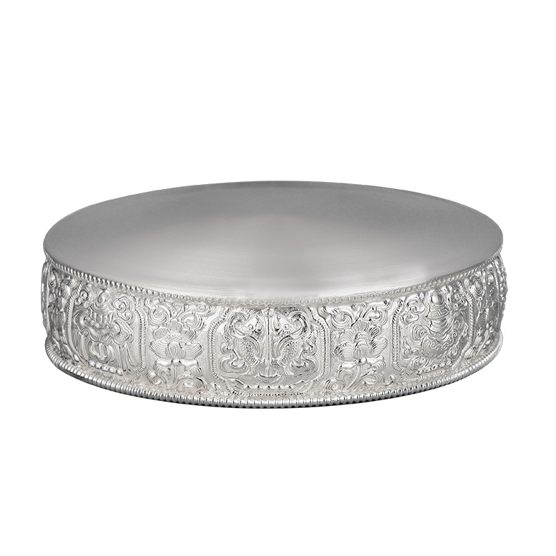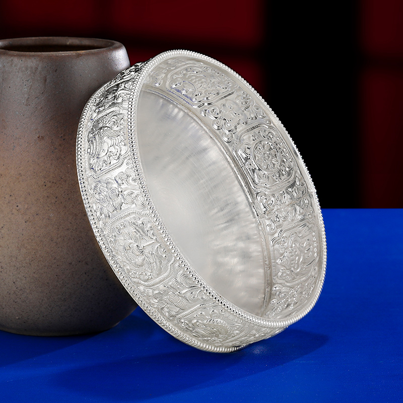 s999 Manza Pan Sterling Silver TrimMancha Roji Disc Carved Eight Treasures for Repair Seven Piles of Manda Tibetan Buddhism 10cm