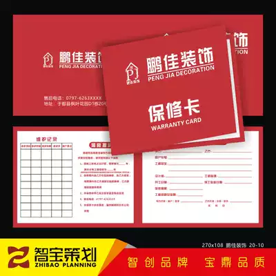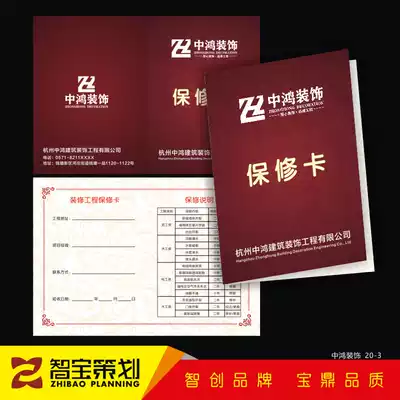 Decoration company engineering warranty card decoration company decoration warranty card door and window wall after-sales service card manual printing