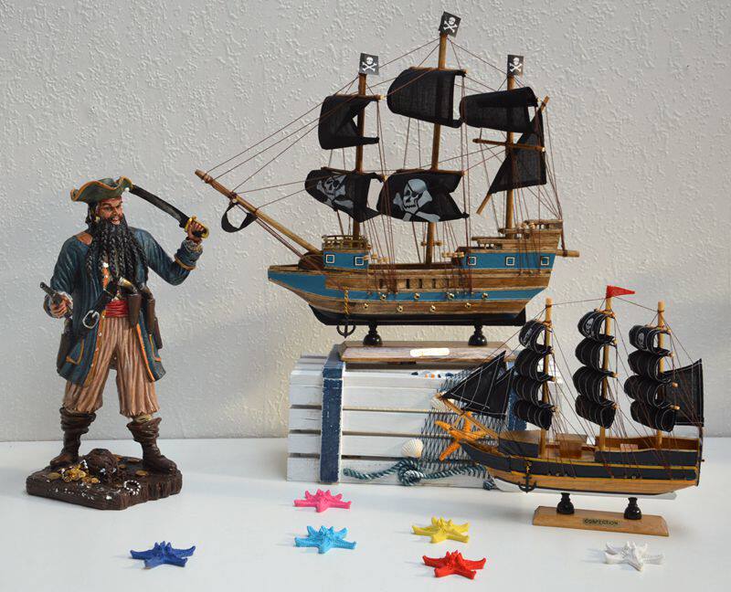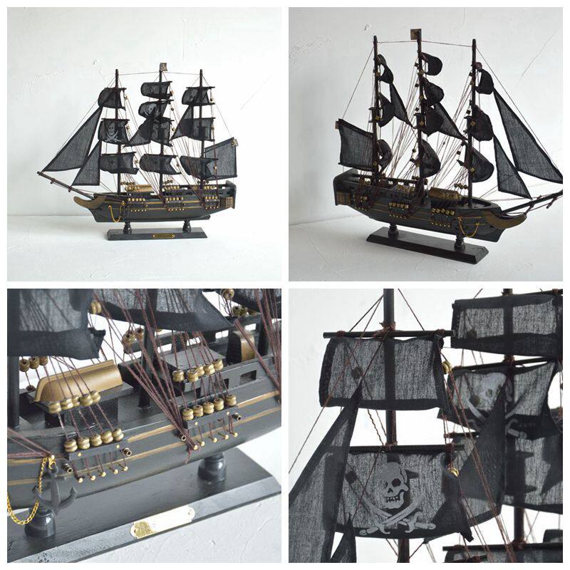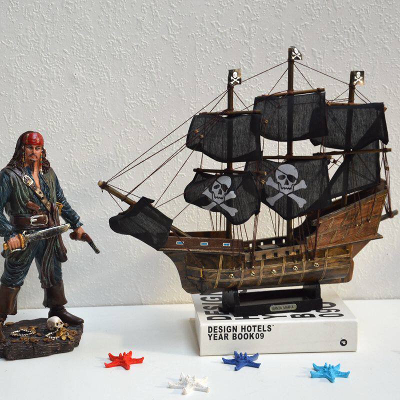 Creative Living Room Decoration Pendulum Pieces Modern Goddess Gift Solid Wood Sailing Model Black Pearl Horn Caribbean Pirate Ship