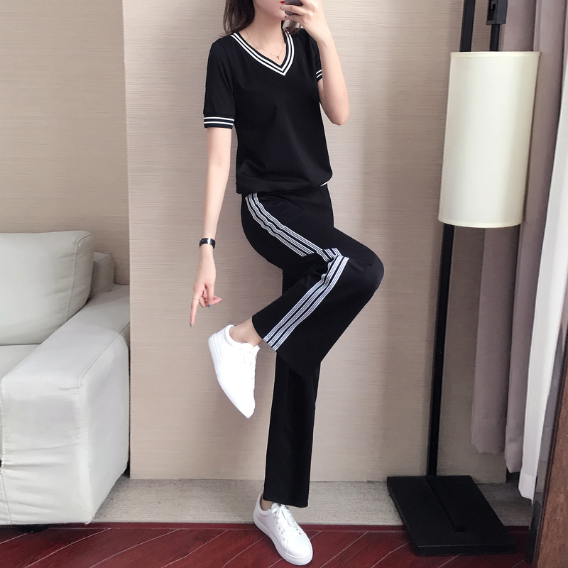 Fashion Suit Women's Summer 2022 New Korean Version Loose Temperament Casual Sportswear Broadlegged Pants Foreign Pie Two Sets