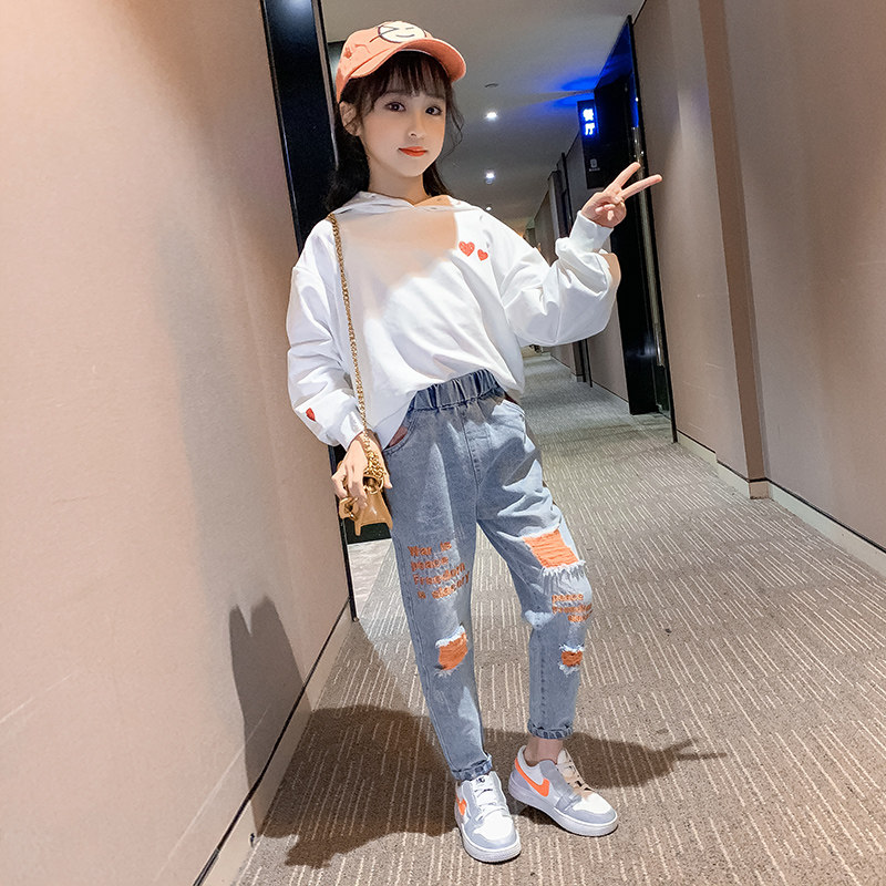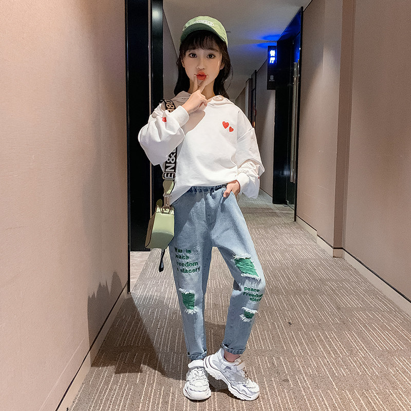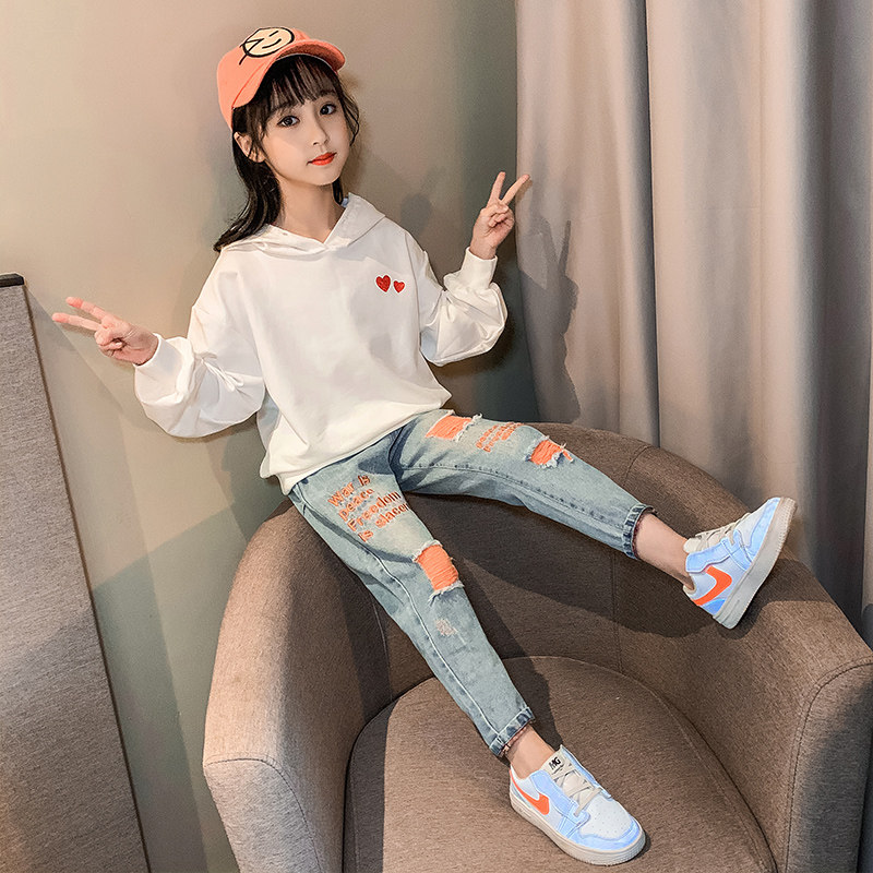 Children's Jeans for Girls Spring 2021 New Kids Big Boy Western School Loose Casual Korean Version Spring and Autumn Pants