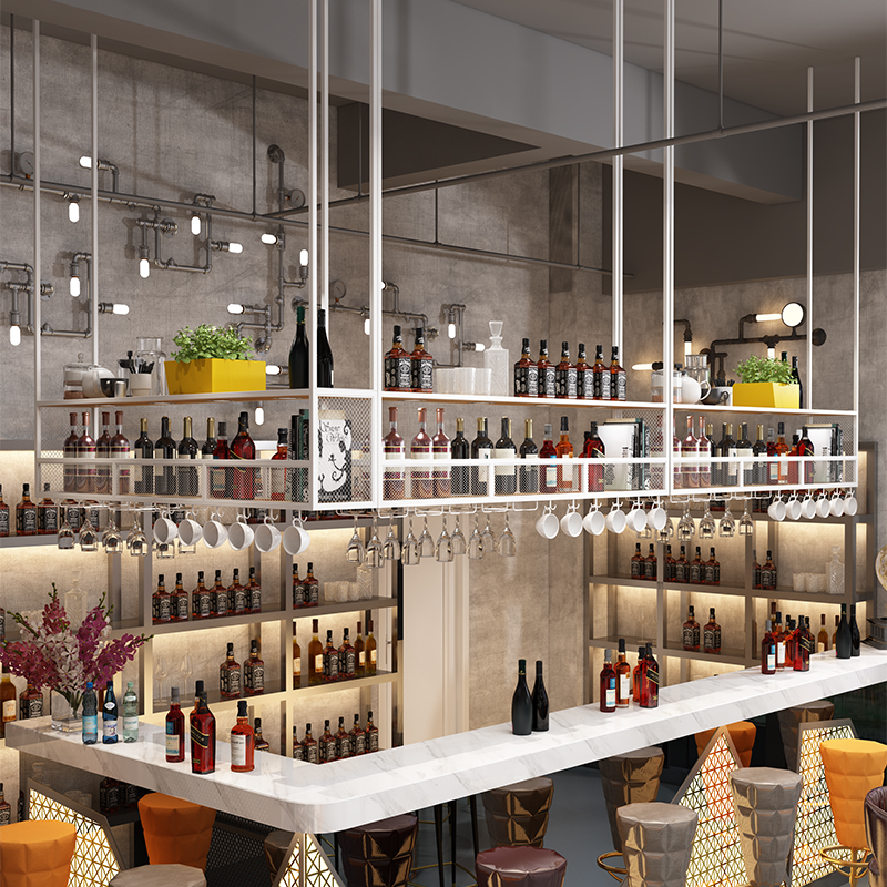Bar iron hanger Upside-down high-legged wine glass rack Wine cabinet hanging wine rack hanger Decorative storage layer rack Storage rack