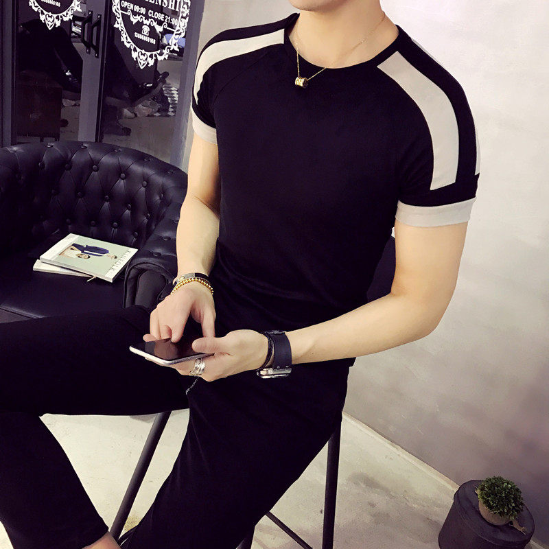 Men's short-sleeved T-shirt trend 2020 new half-sleeved men's fashion brand Korean version slim fit and versatile handsome fashion men's clothing dx