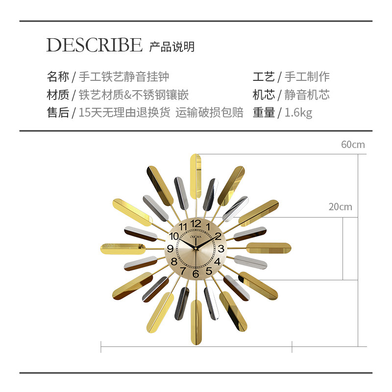 Modern minimalist light luxury and watch dining room hanging clock living room Home clock decoration Creative Nordic personality Art hanging wall hanging table