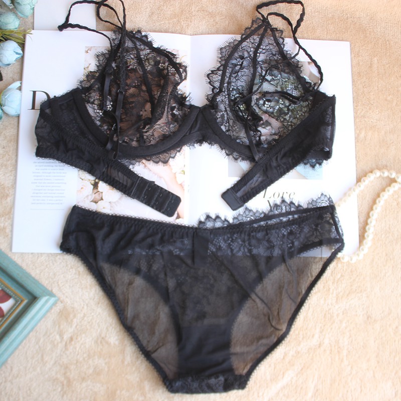 Xiao Fen European and American lace ultra-thin bra Sexy transparent on big chest and small anti-sagging thin underwear for women's summer