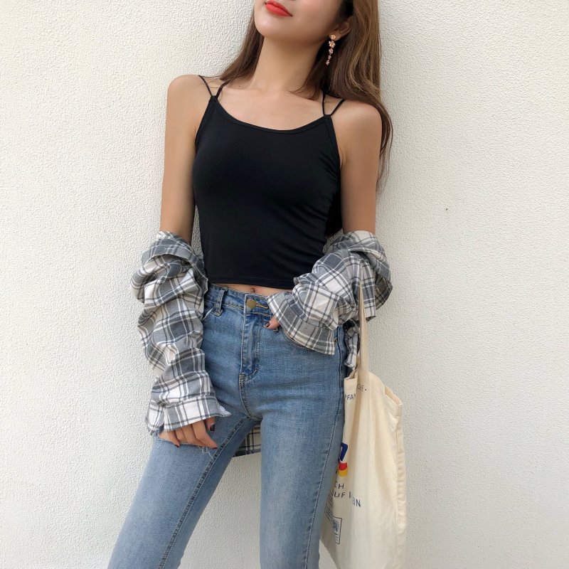 Sexy Harness Woman With Chest Cushion Extractable With Short Truffle Back Cross Beauty Back Vest Slats Bottom Black Sleeveless Blouse Summer