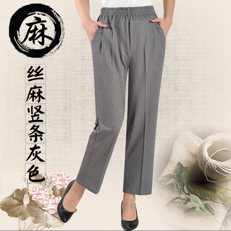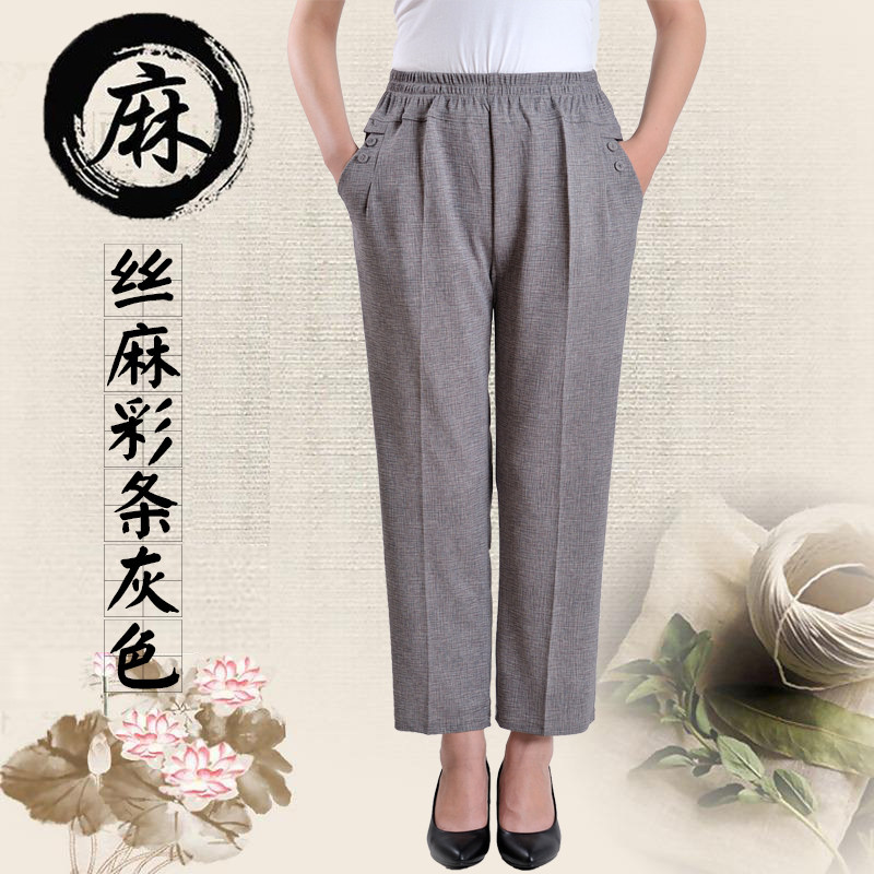 200 catty size for older ladies pants summer clothing plus fattening up fat mom tightness high waist silk linen 90% pants