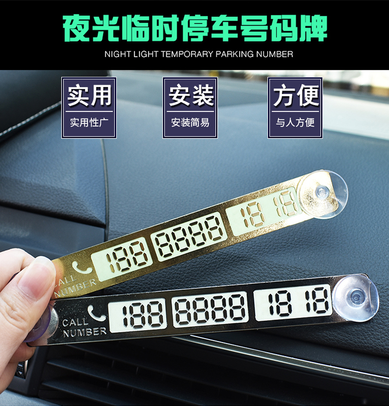 Car parking plate in the car temporary parking plate to move the license plate high-end metal creative night light zero time to the license plate car supplies