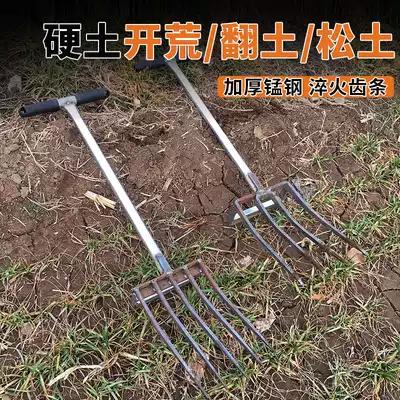 Deep turner Hand forged tooth turning tool Manganese steel turning fork Digging garlic Agricultural turning peanut sweet potato wasteland artifact