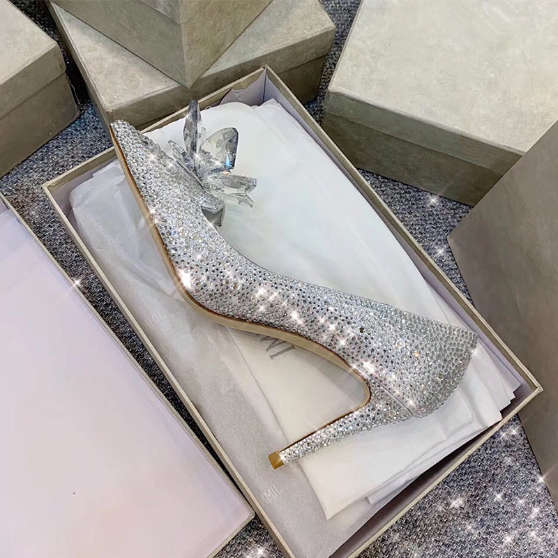 Wedding shoes women's 2022 new wedding bridal shoes dress rhinestone stilettos high heels crystal shoes banquet women's shoes