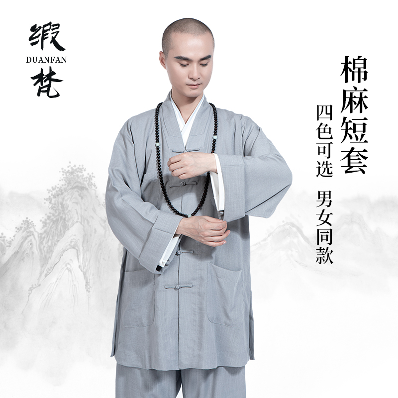 Satin Sansan Cotton and Hemp Monk Clothes for Men and Women Short Clothes Monk Clothes Spring and Autumn Monk Clothes Little Clothes Tibetan Blue Buddhism