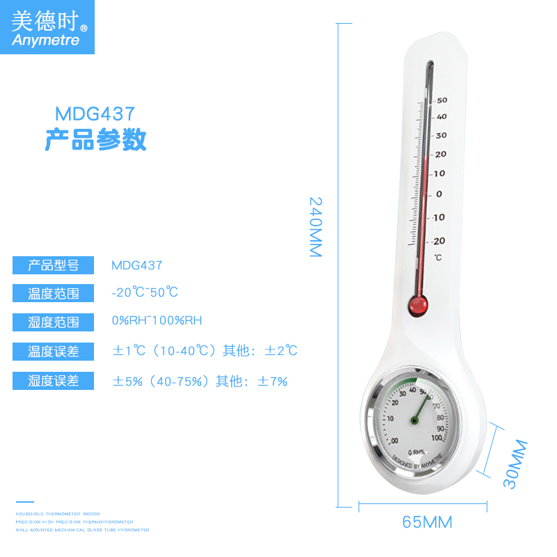 Meideh household wall-mounted mechanical glass tube thermometer indoor precision high-precision temperature and hygrometer greenhouse