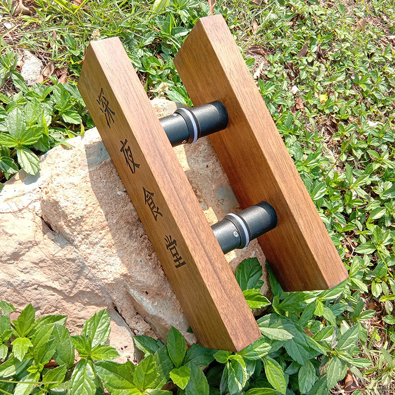 Custom LOGO wooden glass door handle solid wood Chinese antique KFC door log handle personality creativity