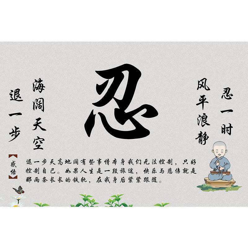 Qi, calligraphy and painting, hanging paintings, meditation, tolerance, peace of mind and Chinese living room decorative painting mural wall stickers self-adhesive