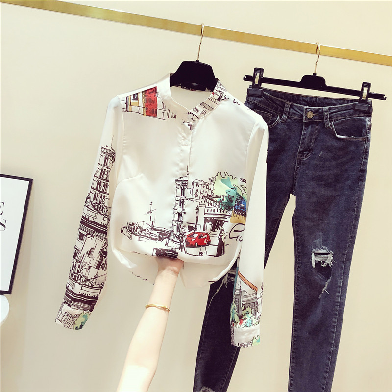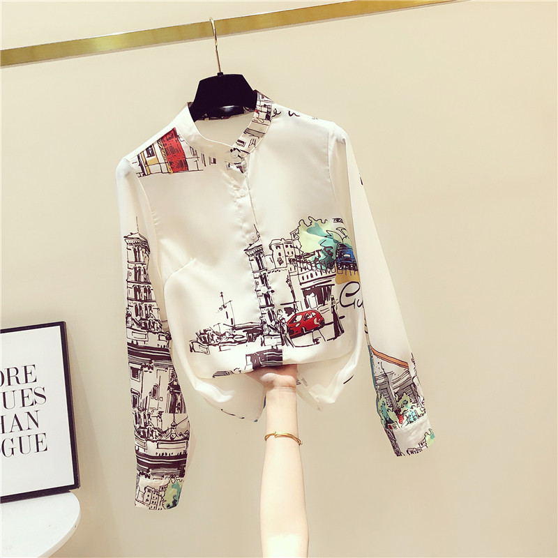 Korea 2022 Spring and Autumn New Loose Retro Hong Kong Style Floral Shirt Women's Design Sense Niche Long-sleeved Fashion Top