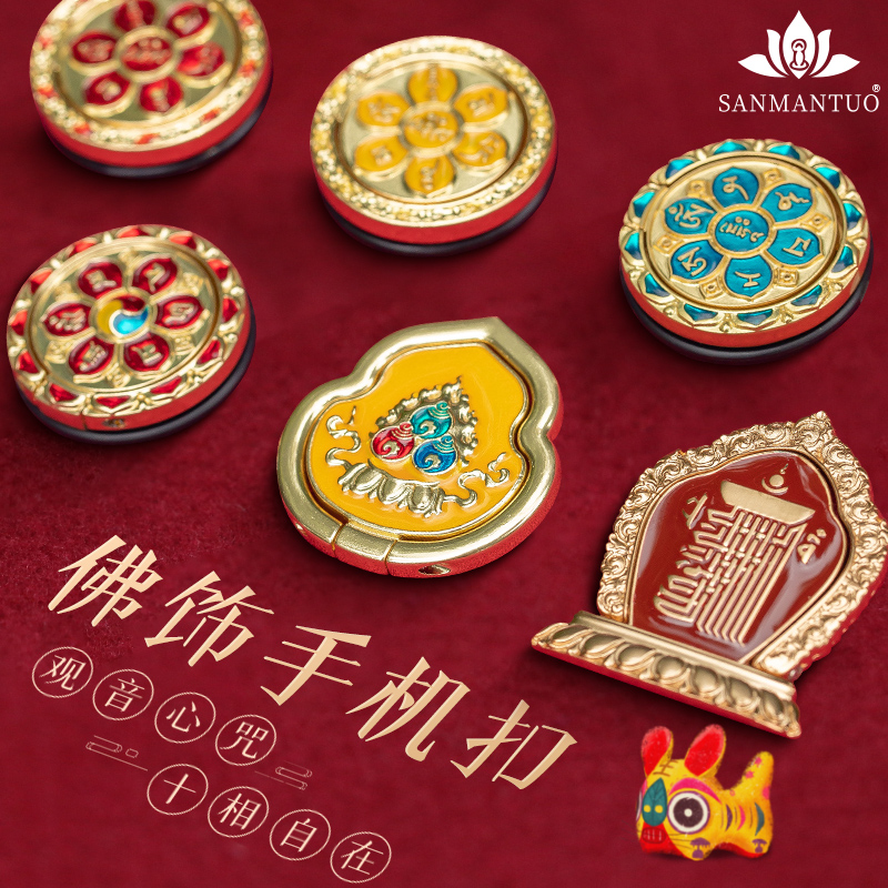 Three-rover ten phase at ease with pattern mobile phone ring buckle sticking frame metal ring button Apple mobile phone tablet general purpose
