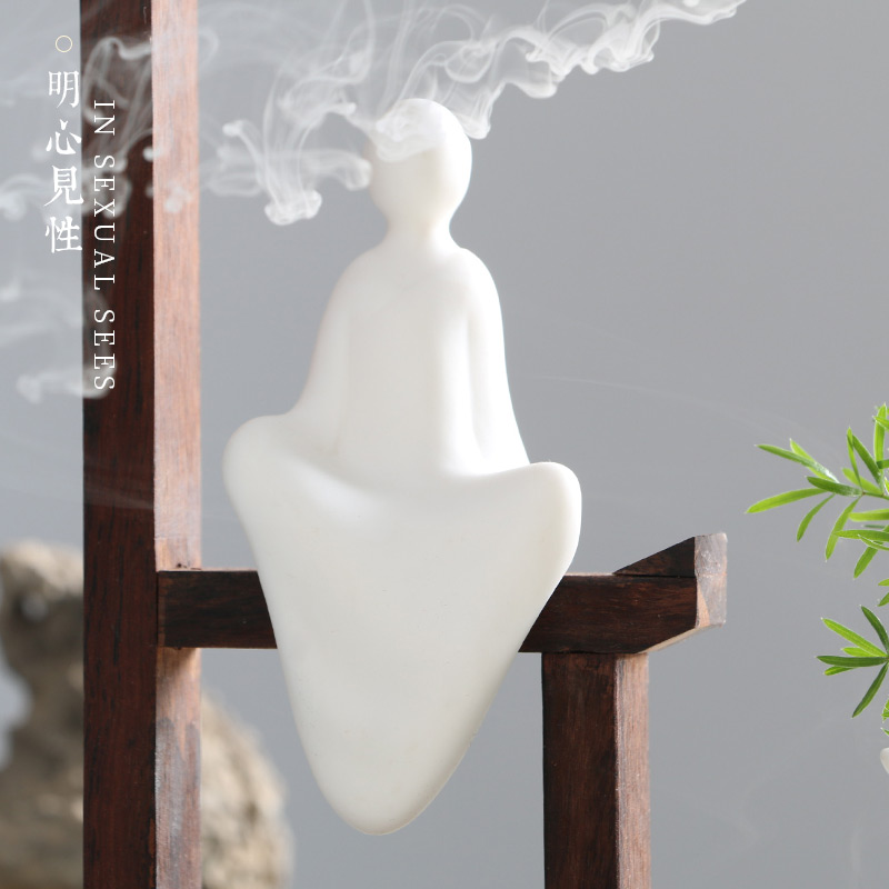 Three manga frosted white ceramic without phase-back incense stove Creative Views Smoke Tower Zen of a small monk and a gift for a gift