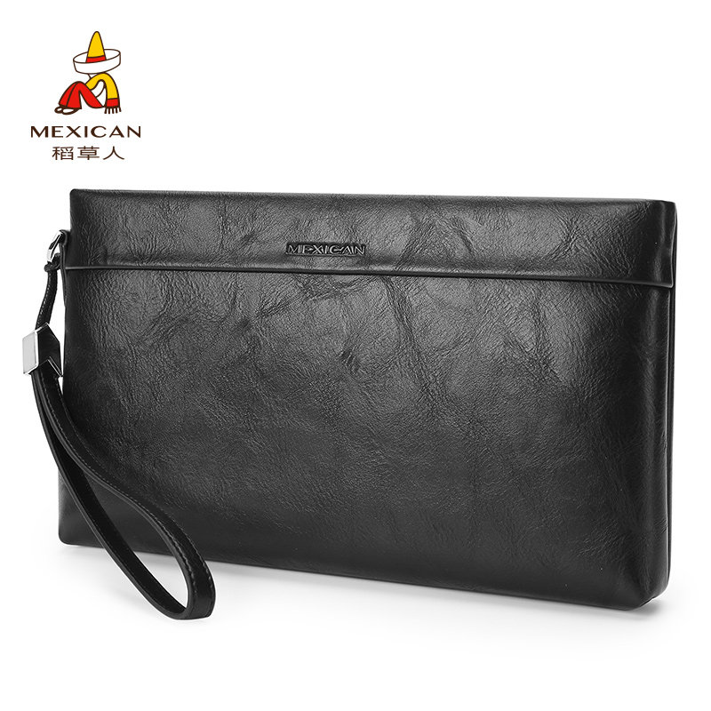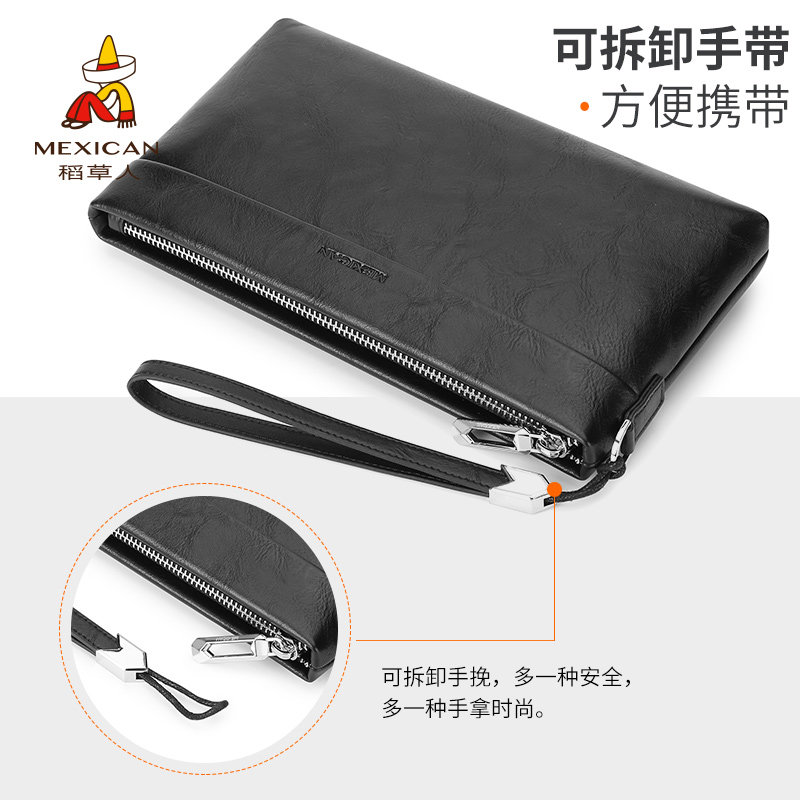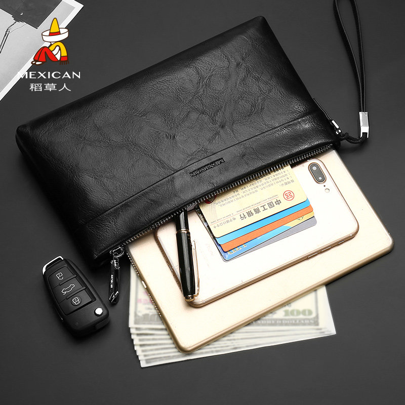 Scarecrow big handbag men simple casual mobile phone bag soft leather clutch bag large capacity zipper wallet envelope bag