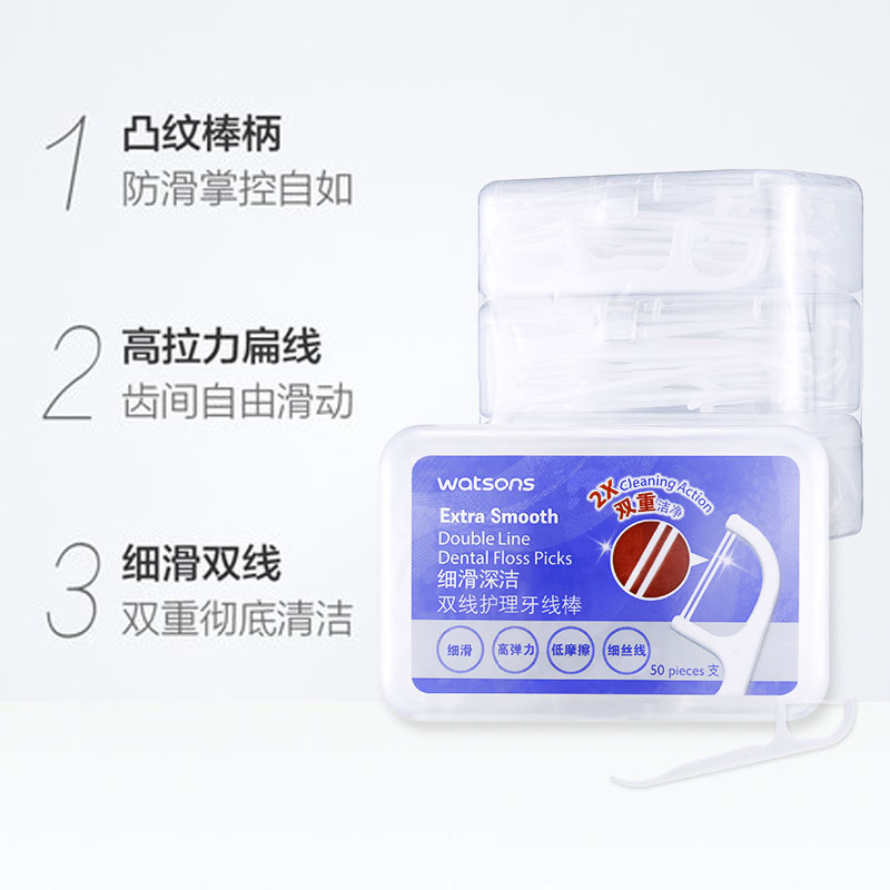 Watson's smooth and deep clean double-line nursing dental floss stick 50 * 3 boxes of round line family-packed toothpicks flossing portable