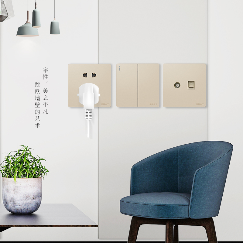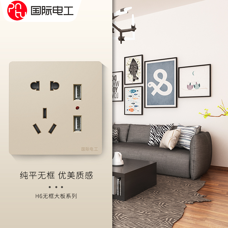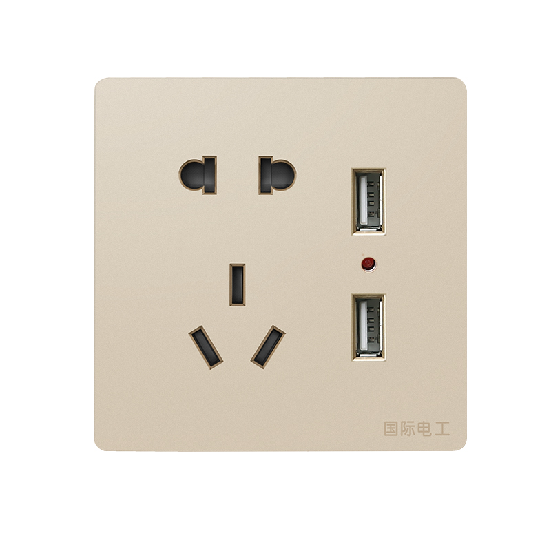 International Electrics Big Board Bright Gold Power USB Switch Socket Panel 86 Wall Style 5 Five Holes Socket With Dual USB
