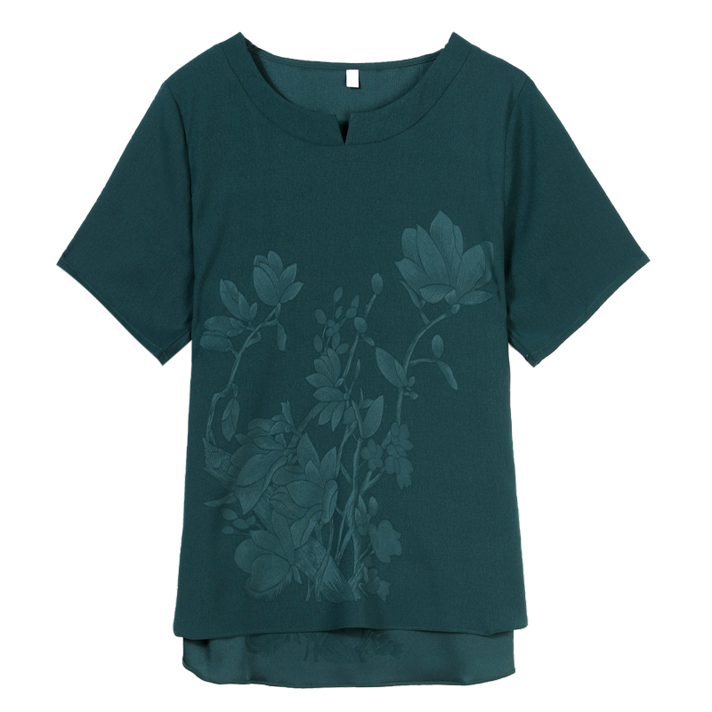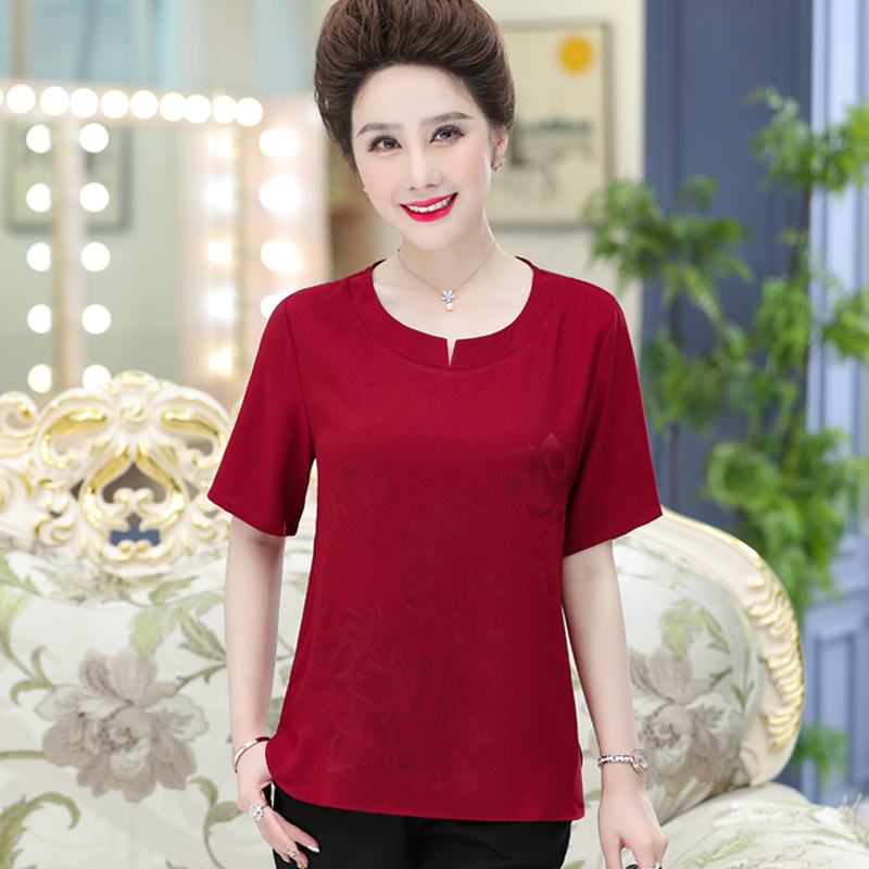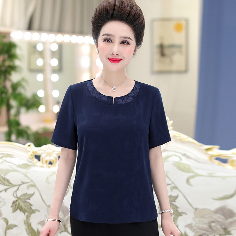 Middle-aged fat mother summer dress Hangzhou silk top female Western style suit mulberry silk short-sleeved t-shirt plus fertilizer plus size