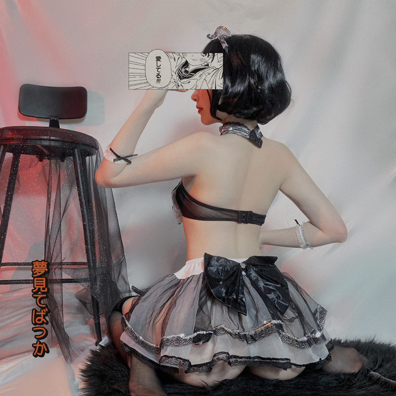 Maid suit (head hoop neck ring wrapped bra bracelet skirt) T pants Maid suit (head hoop neck ring wrapper bracelet bracelet skirt) T pants black sex stockings