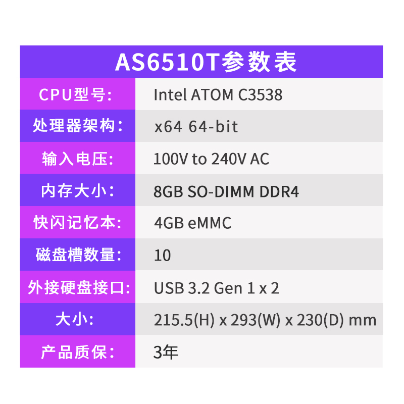 AS6510T (labelled without disc) AS6510T (16T with 4 blocks of 4T enterprise disc) AS6510T (40T with 10 blocks of 4T enterprise disc) AS