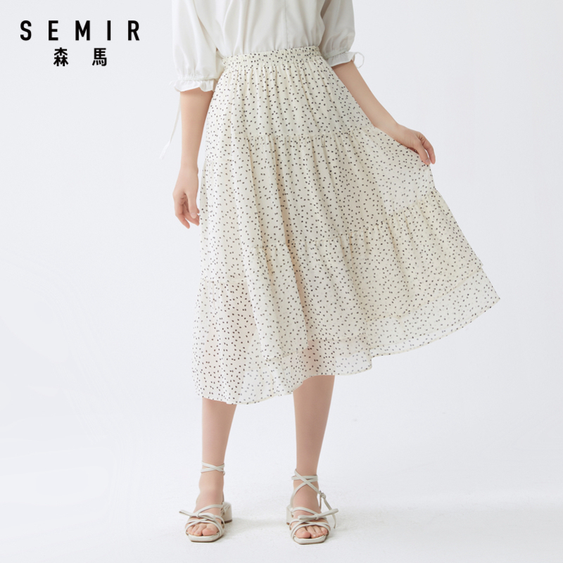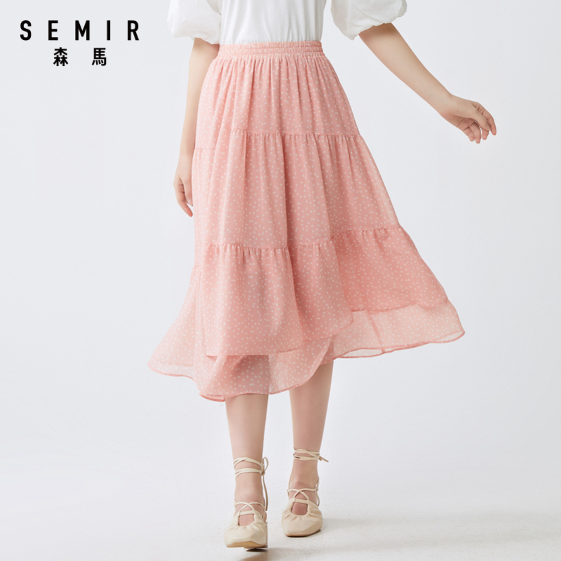 Senmar Half Dress Woman 2022 Summer new 100 Pleat Skirt A Character Slim Middle Long Version Sensual Temperament Fashion Pure Color