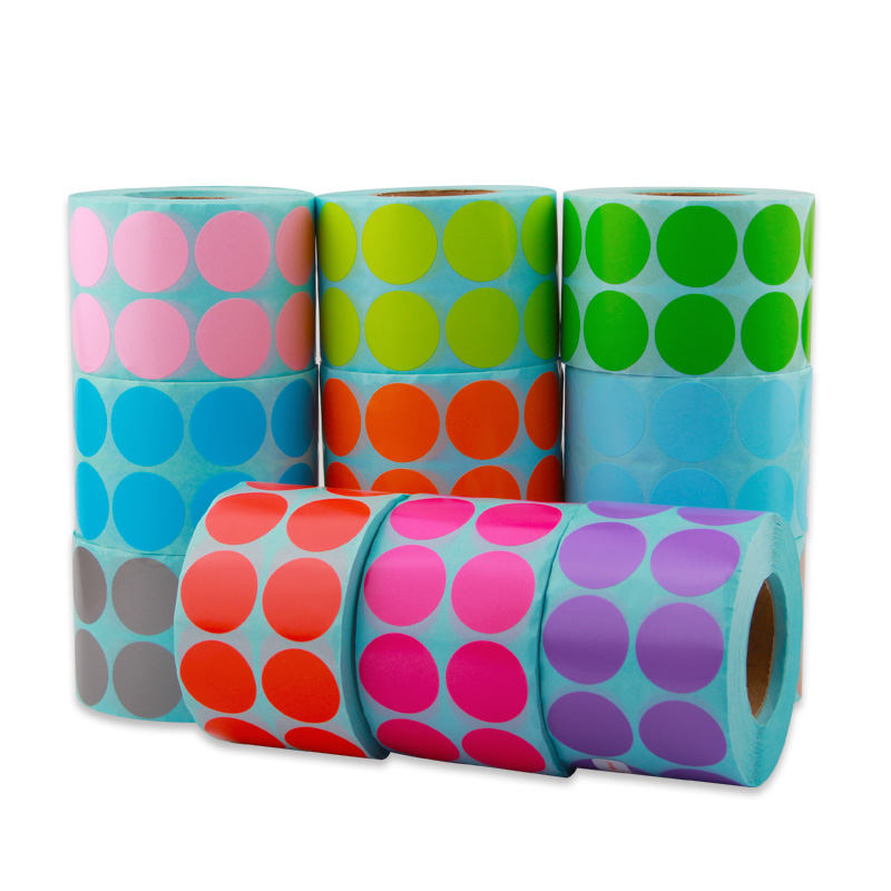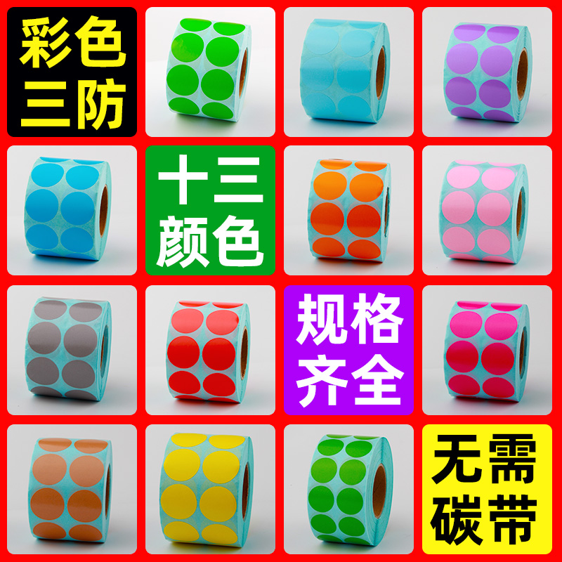 Round colored thermo-sensitive label paper 10 15 15 25 25 30 35 40 60 60 60 code photocopy paper 70 diameter adhesive sticker waterproof closure sticker round point printing to take