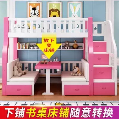 Bed under the table Children's bunk bed high and low bed Solid wood multi-function mother and child bed desk combination upper and lower bed double bed