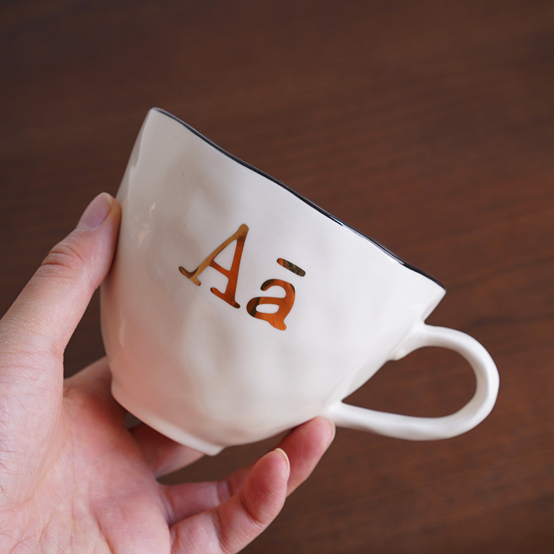 Exit Nordic minimalist gold Alphabet Hands Pinched Ceramic Coffee Cup Afternoon Teacup Milk Tea Oat Breakfast Cup