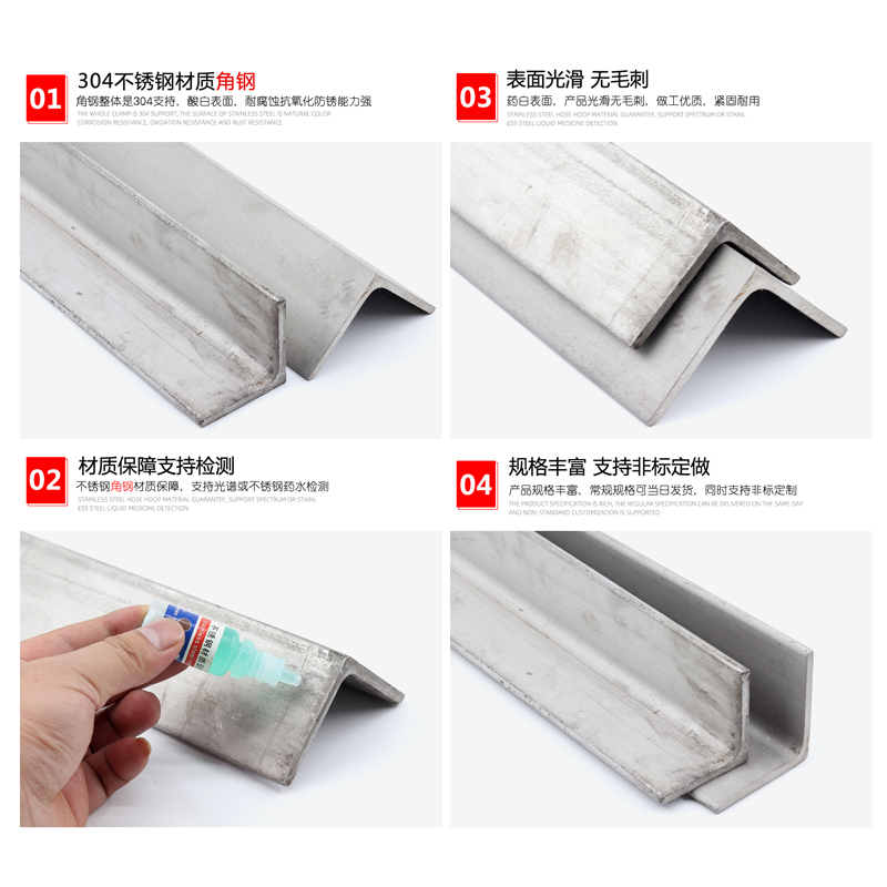 201 304 316L 310 stainless steel angle steel material angle iron with holes unequal side bracket custom punching zero cut