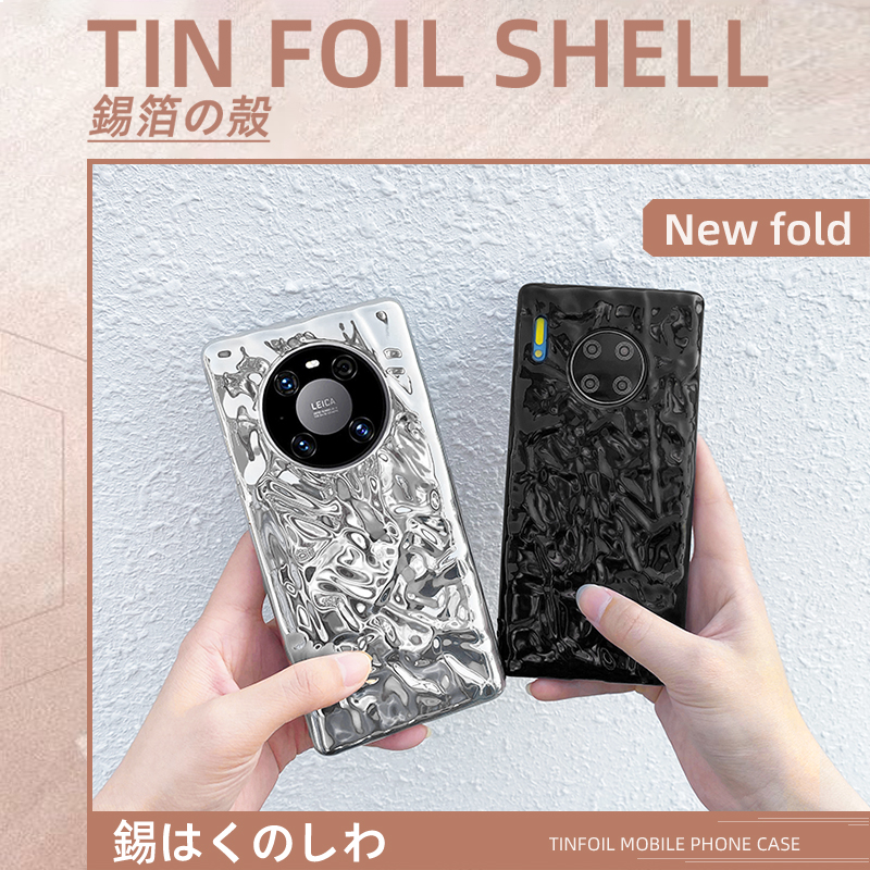 Suitable for Huawei mate30pro mobile phone protective shell P50 tin foil pleated mate40 soft shell nova female limited tide personality