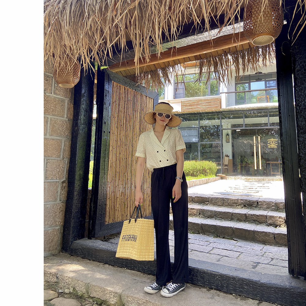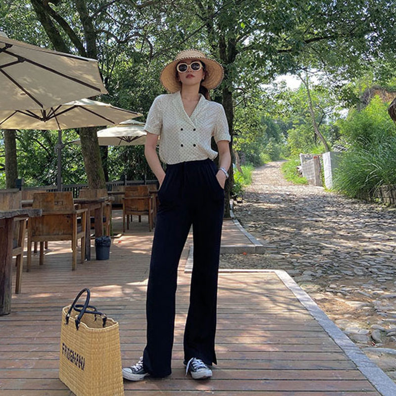 Small Lashen Pants Display Slim Drag Ground Pants Loose Straight Drum Pants Open Fork Broadlegged Pants Woman High Waist Long Pants 2022 Spring Autumn