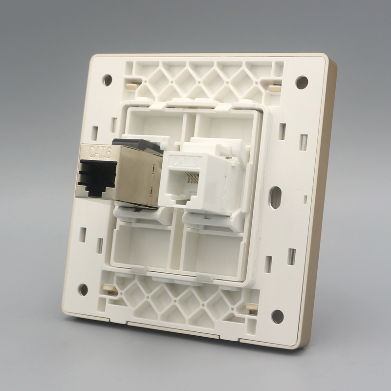 Shielded six types of IP phone pass-through panel Gigabit port computer module Champagne color 86 type network cable voice socket