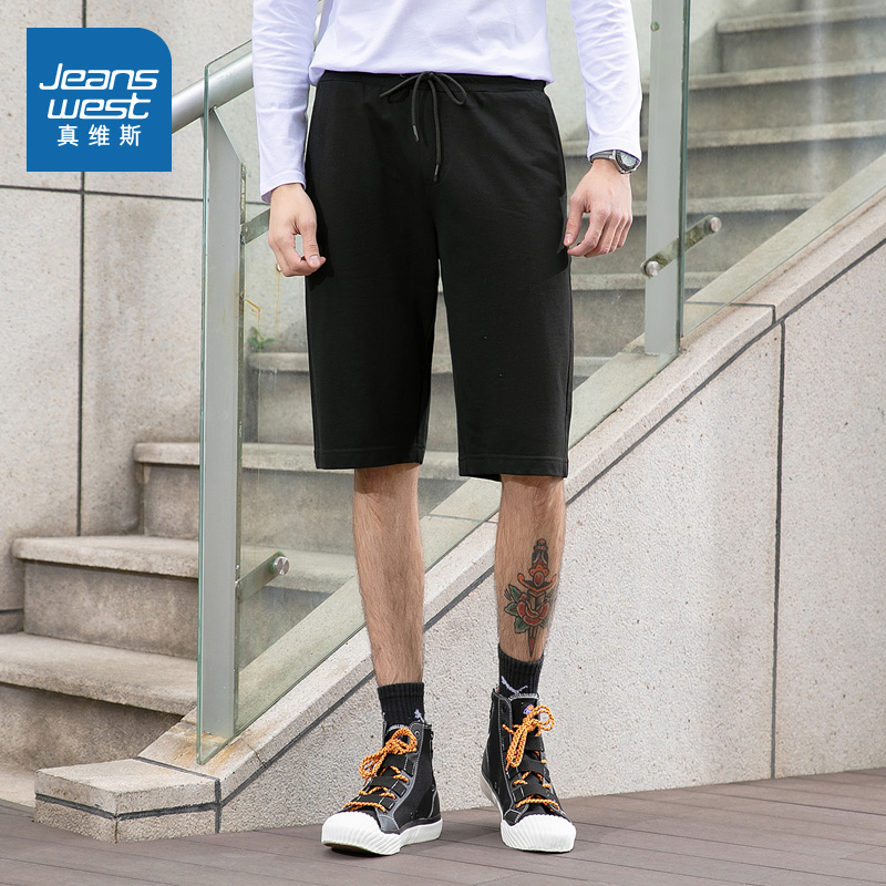 Zhen Weis men's summer trend shorts Men's thin casual wear outside five-point pants loose knitted sweatpants sweatpants