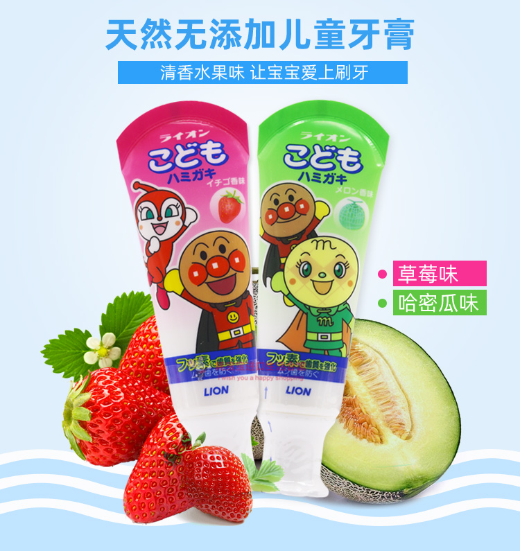 Japanese Lion King LION bread Superman children Toothpaste Strawberry Taste Honeydew Melon with fluorocalcium 40g